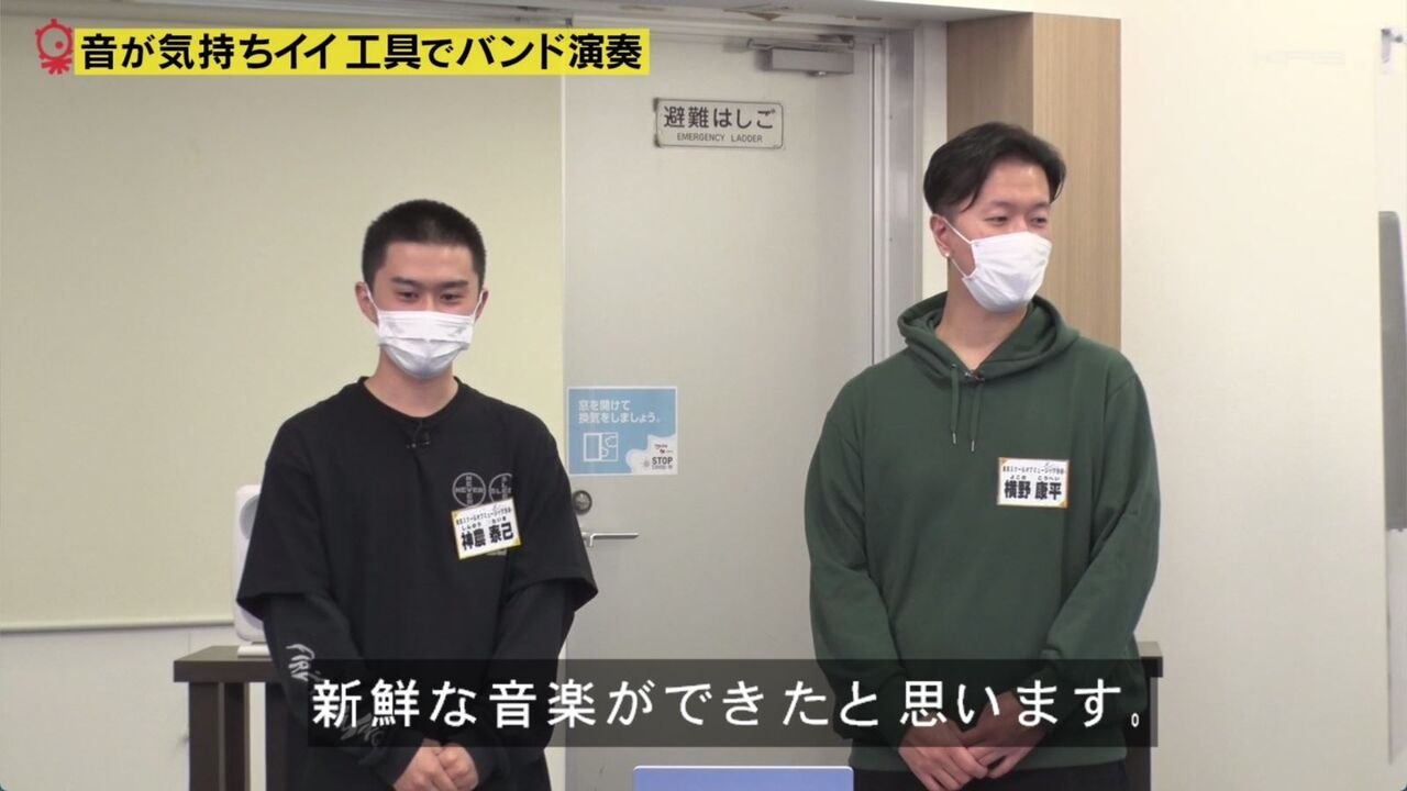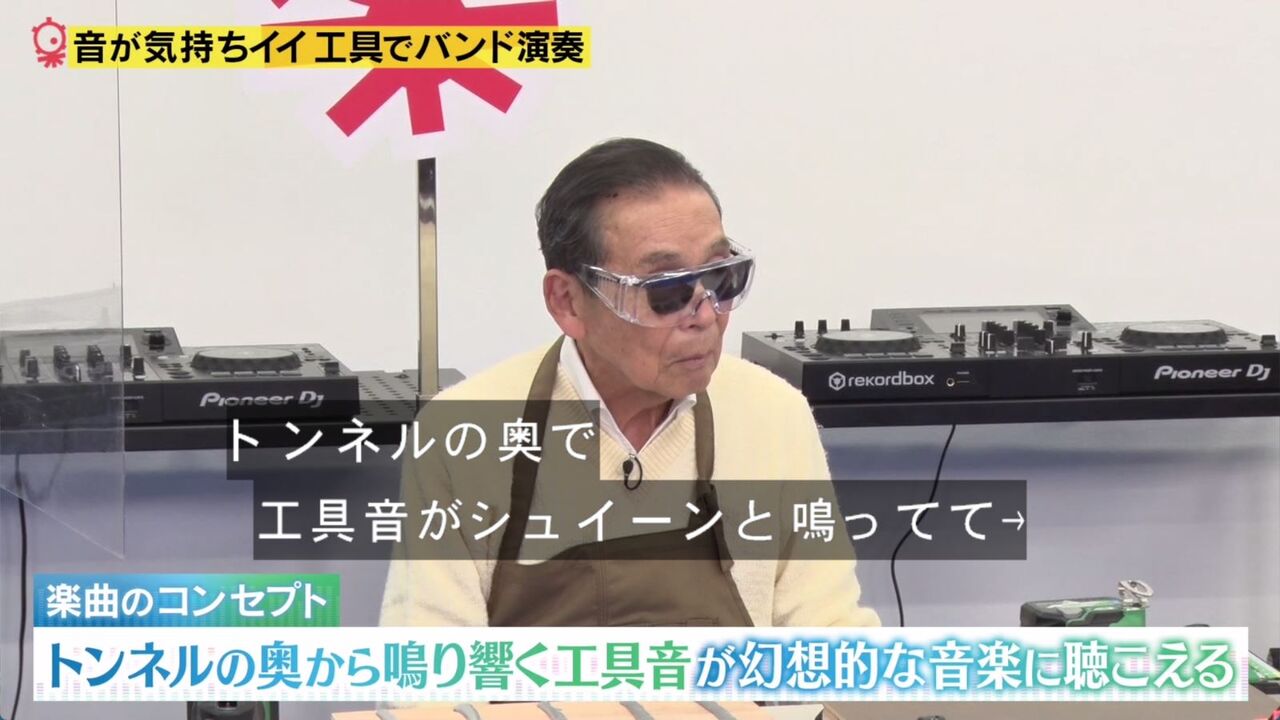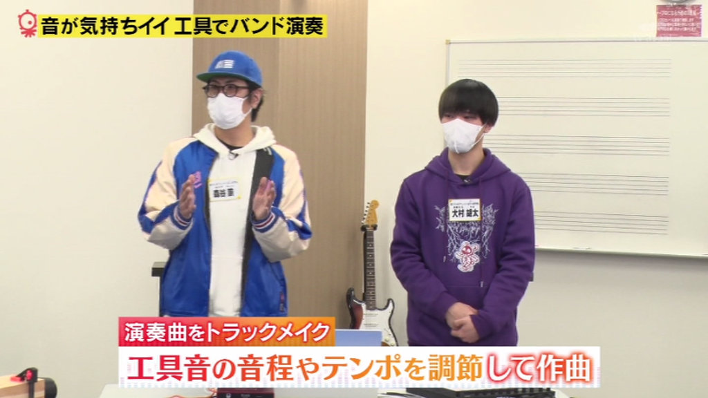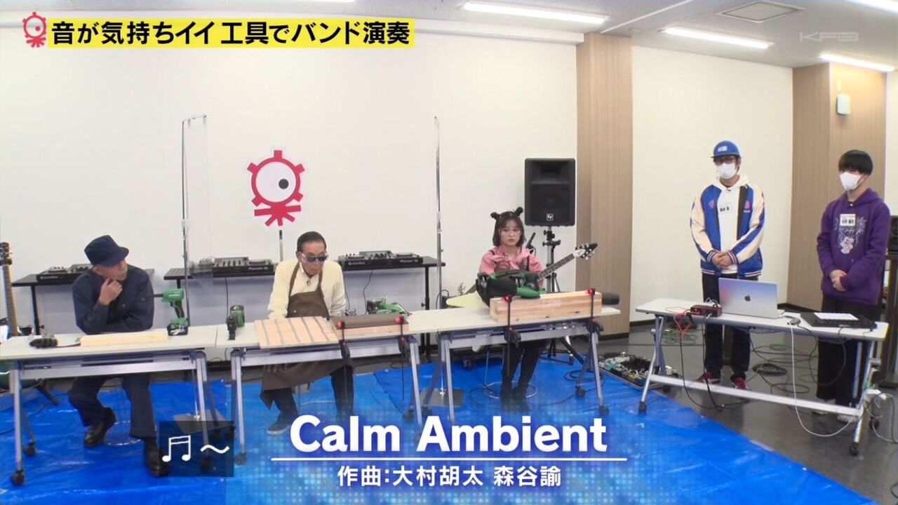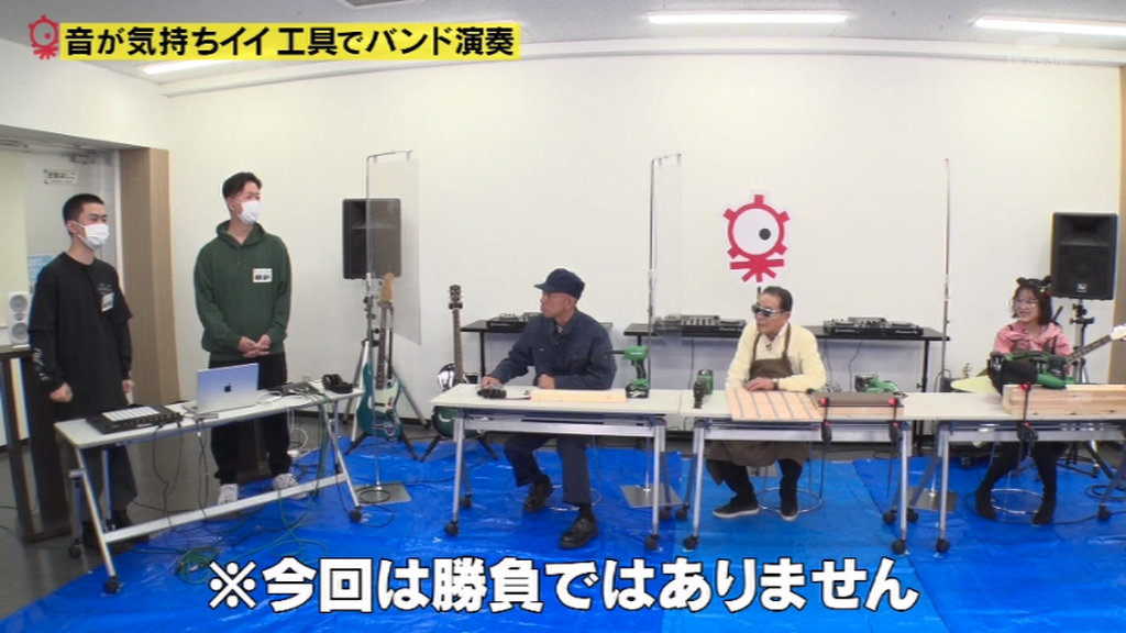 横野・神農組と森谷・大村組の2チームに分かれ、作業音・工具音を使ってそれぞれ違う曲を制作。