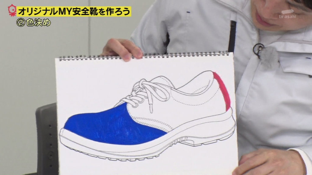 宮下のサンプルをベースにタモリがハイカットの靴で色決め。