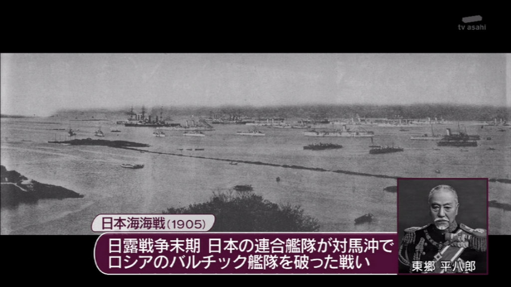 日露戦争末期、日本の連合艦隊が対馬沖でロシアのバルチック艦隊を破った戦い