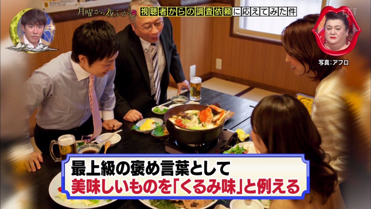 刺身を食べてもらい、その感想を「くるみ味」と言うのか?
