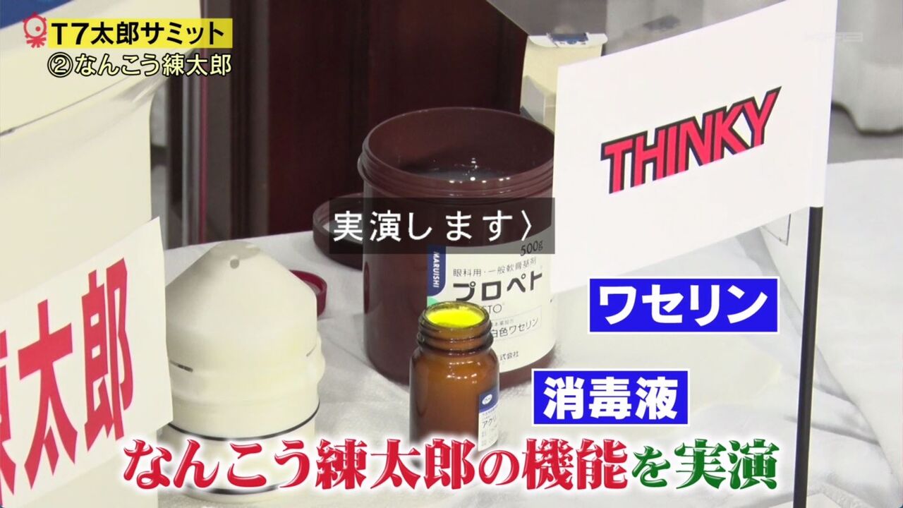 ワセリンと消毒液を使って練太郎の機能を実演。