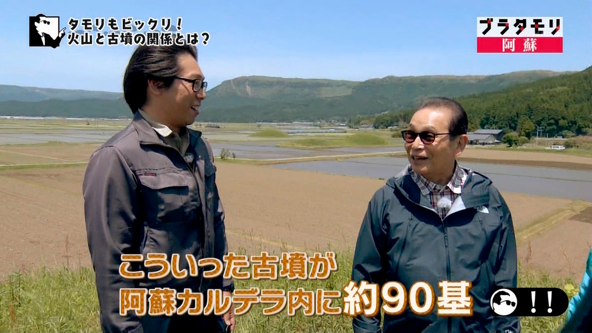 まずタモリさんがやってきたのはカルデラの中心部、中央火口丘の草千里ヶ浜。