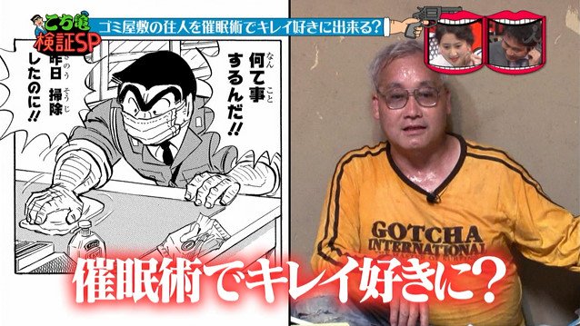 不潔な両さんをきれい好きにする催眠術をかける。