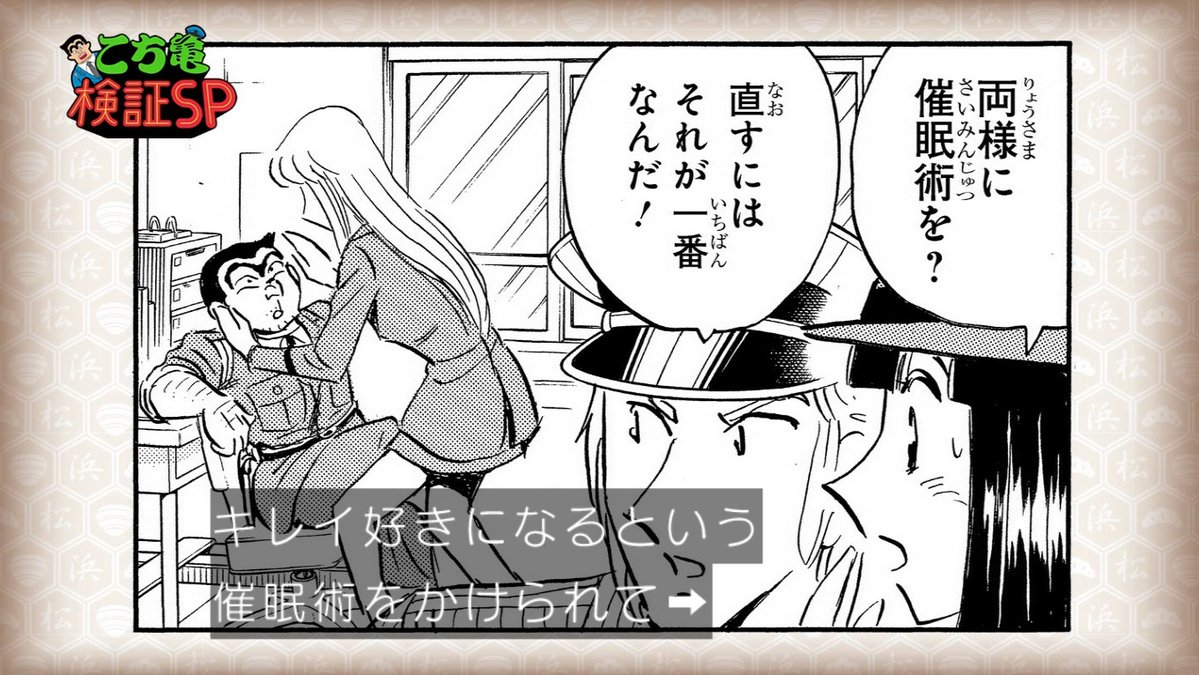 催眠術にかかった両さんは潔癖症になる。