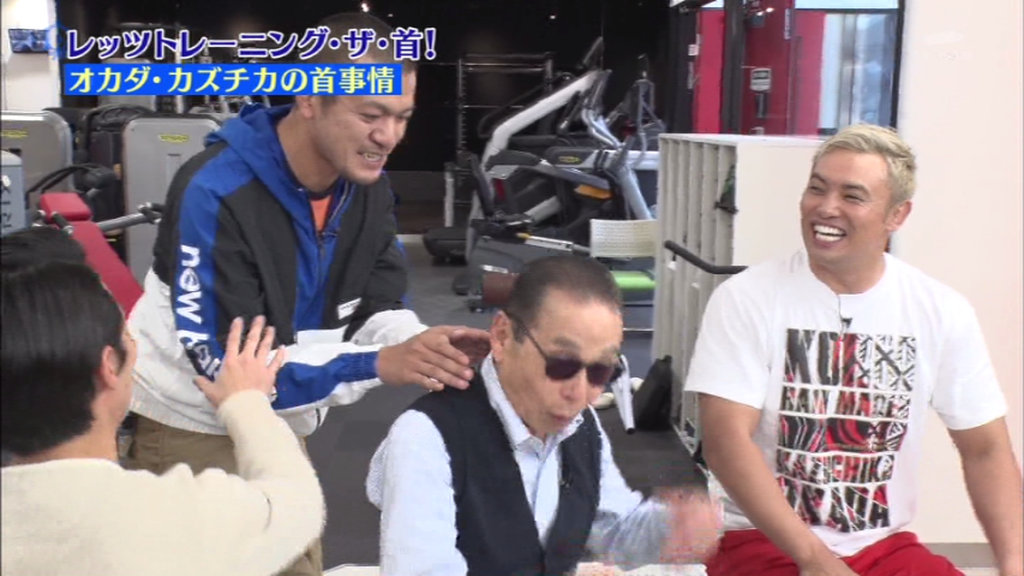 改めて、オカダ・カズチカの首を触ってみる。