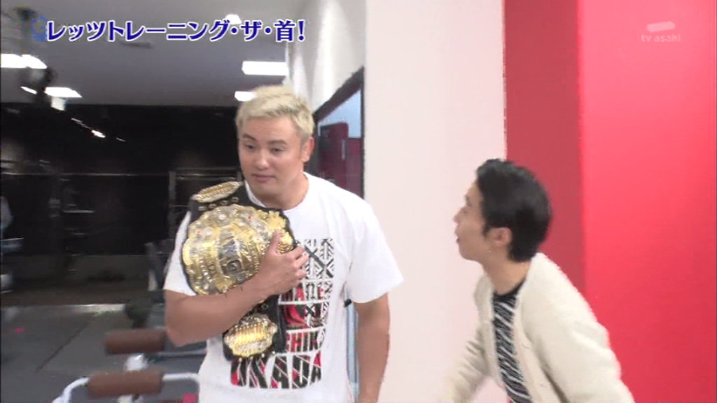 オカダ選手もたくみのどつきを体験。