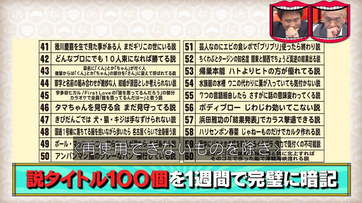 番組がチョイスした100の説タイトルを全部覚えてください。