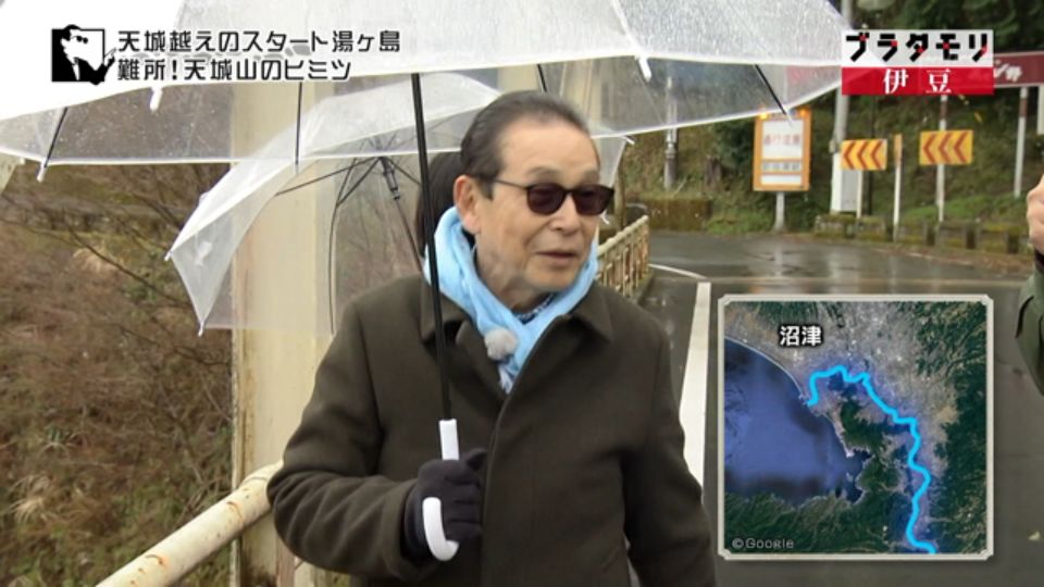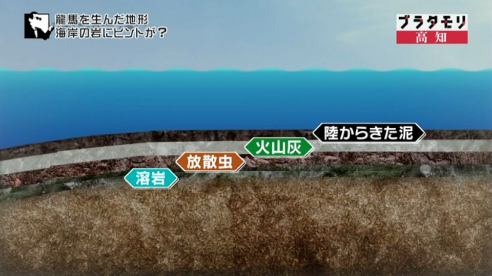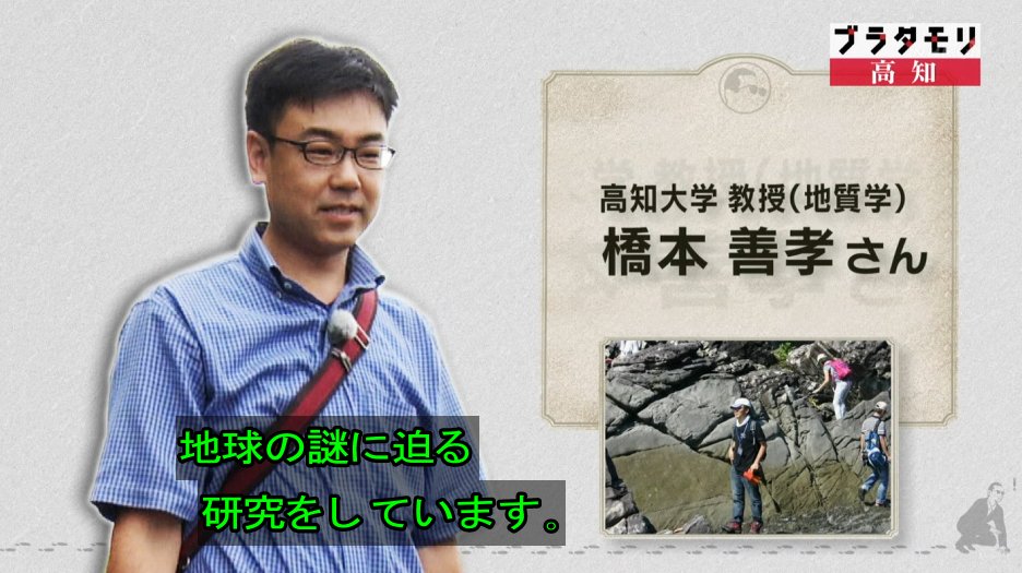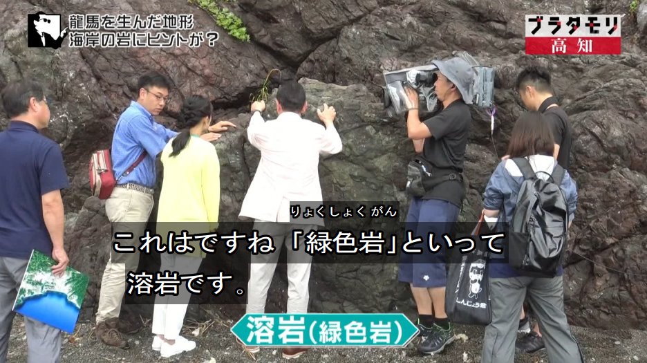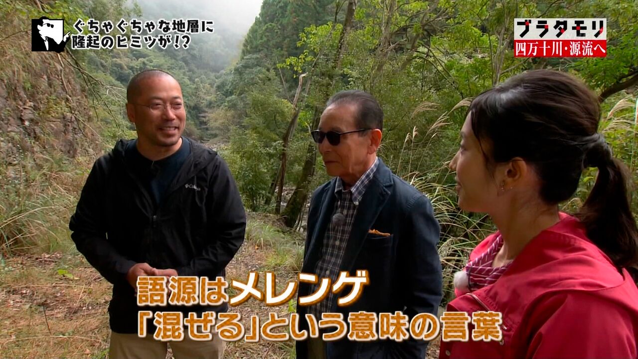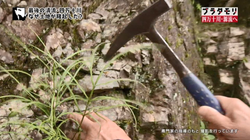 土地が隆起した理由を探るため、タモリさんたちは集落近くの小さな崖にやってきました。