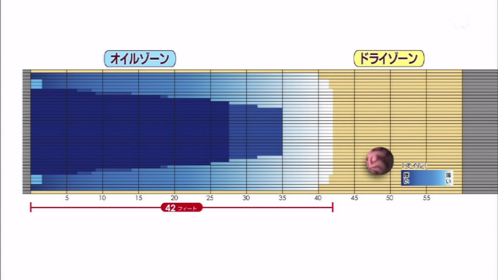 レーンの手前40フィートのみにオイルが塗られている。