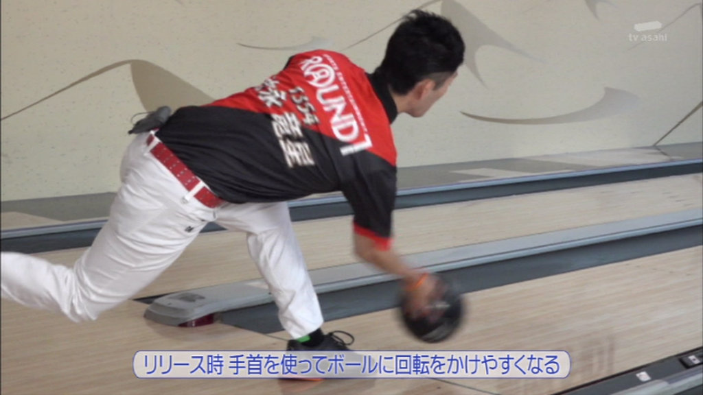 リリース時、手首を使ってボールに回転をかけやすくなる。