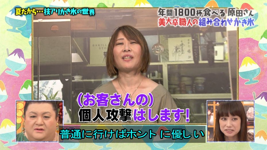 原田さんは2年前に「かき氷の世界」で初登場、今回2回目の出演です。