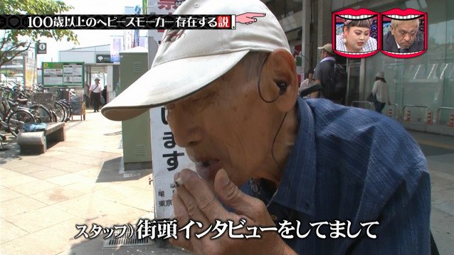 タバコを吸っている高齢者に街頭インタビュー。