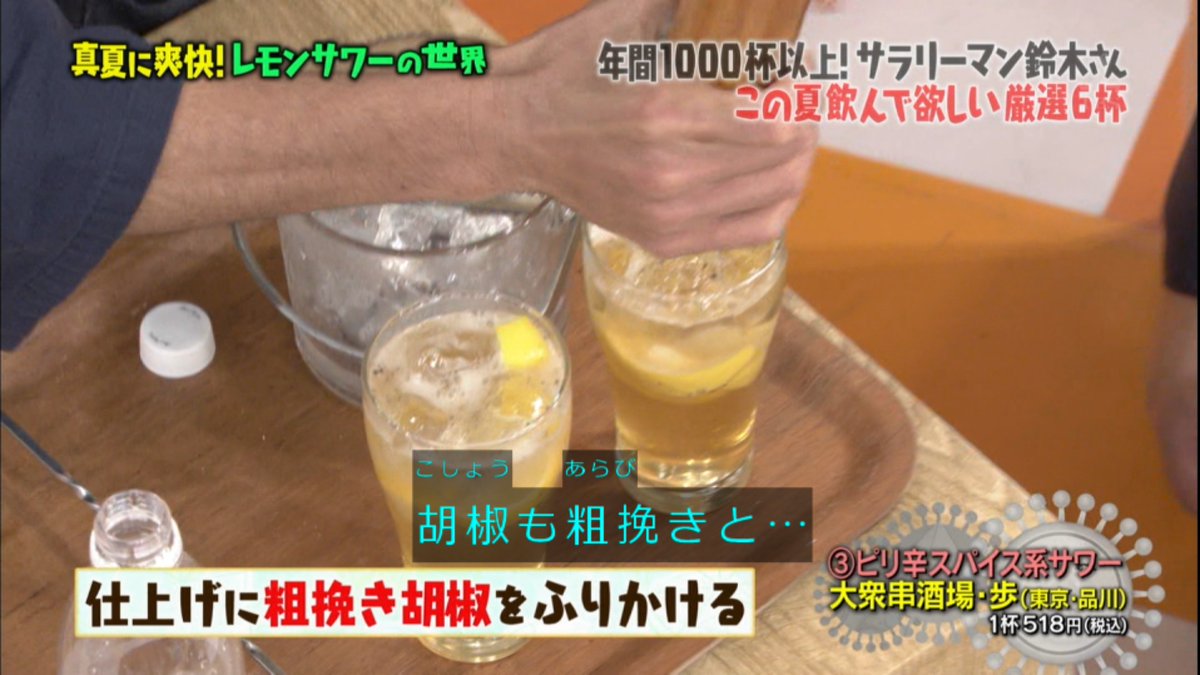 3杯目は西小山の大衆串酒場 歩(あゆむ)のスパイスレモンサワー(518円)。