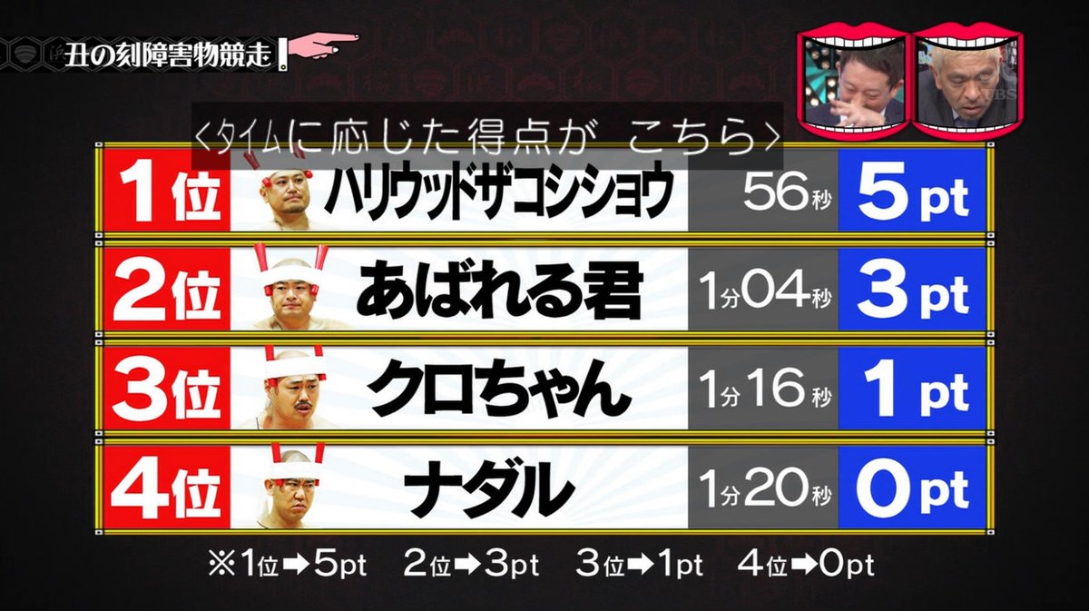 ということで、それぞれのタイムに応じて得点が与えられました。