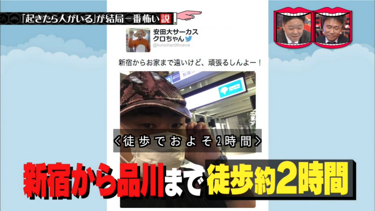 新宿から品川の自宅まで歩いて帰るというクロちゃんからの報告があった。