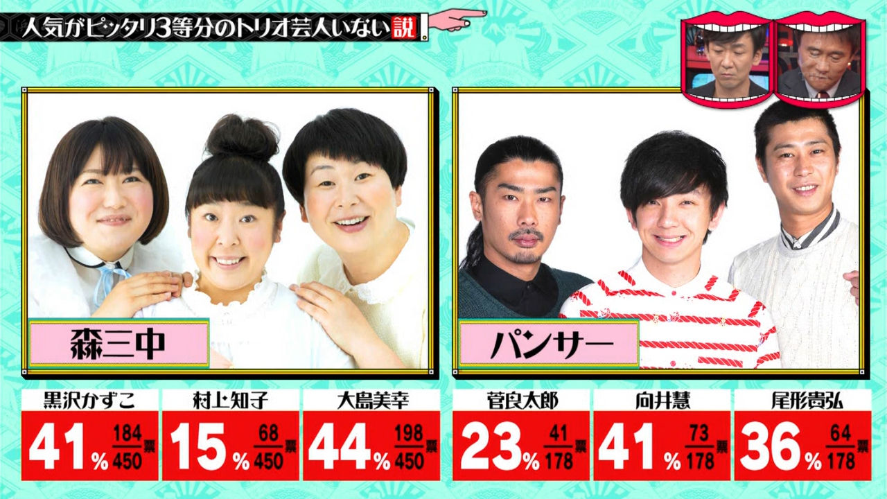 「森三中」と「パンサー」の人気バランス。