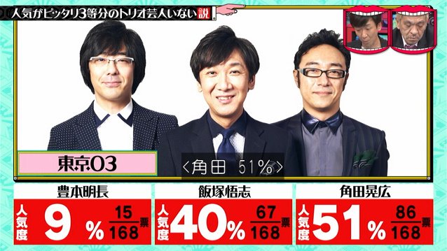 「東京03」の場合、調査対象は168人。