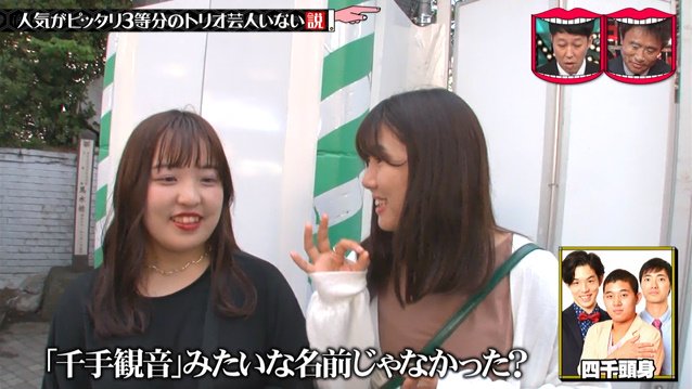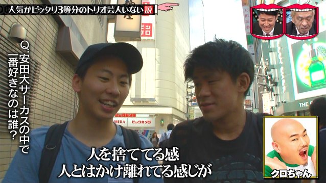 街頭インタビューで特定のトリオ芸人の中で一番好きな人を選んでもらいます。