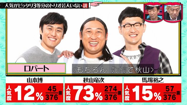 「ロバート」はダントツで秋山。