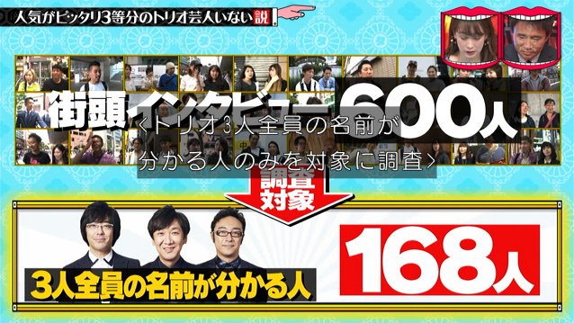 なお、街頭インタビューは600人に行いましたが、トリオ全員の名前がわかる人のみを調査対象にします。