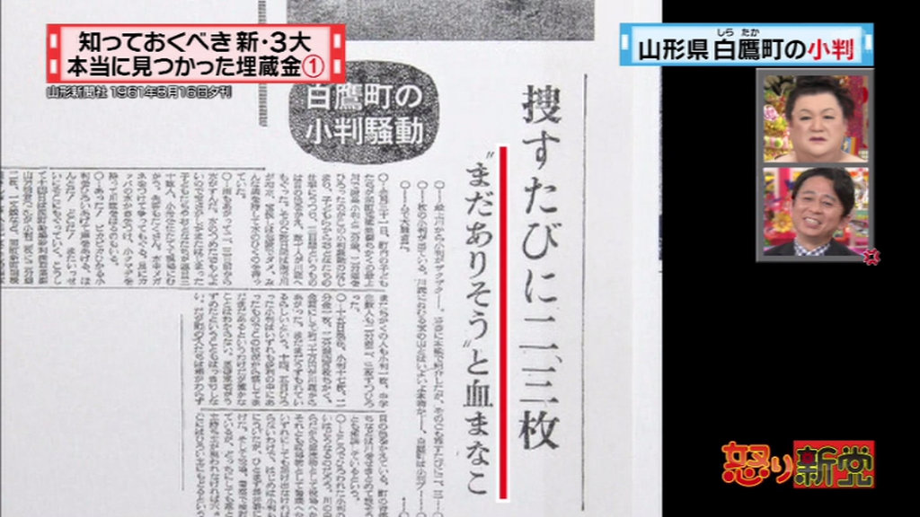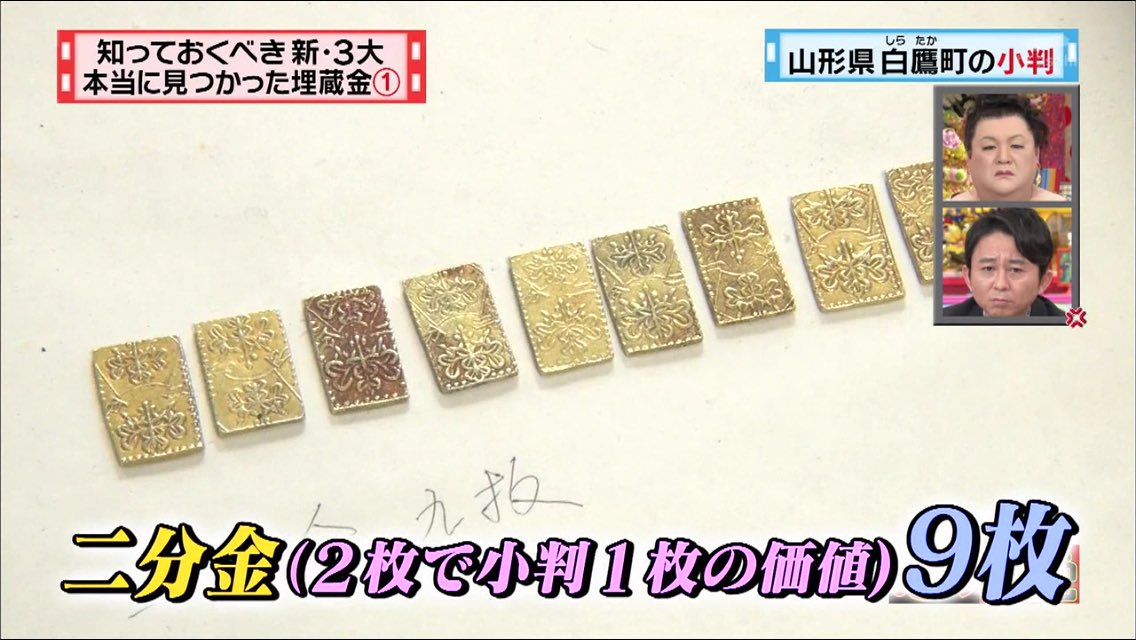 今回の新3大は、ほんとうに出てきた金銀財宝です。