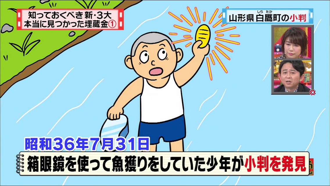 昭和36年7月31日、箱眼鏡を使って魚獲りをしていた少年が一枚の小判を発見。