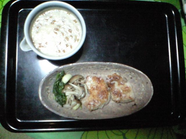 肉はベーコンを焼く要領で、よく焼いて脂を落とすこと。