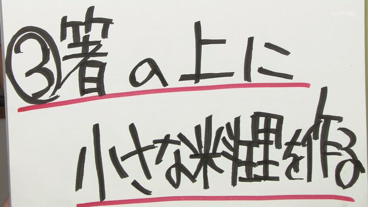 ③ 箸の上に小さな料理を作る