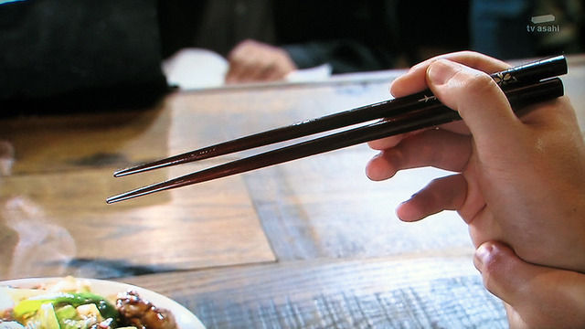 箸をねじって見せないようにする。