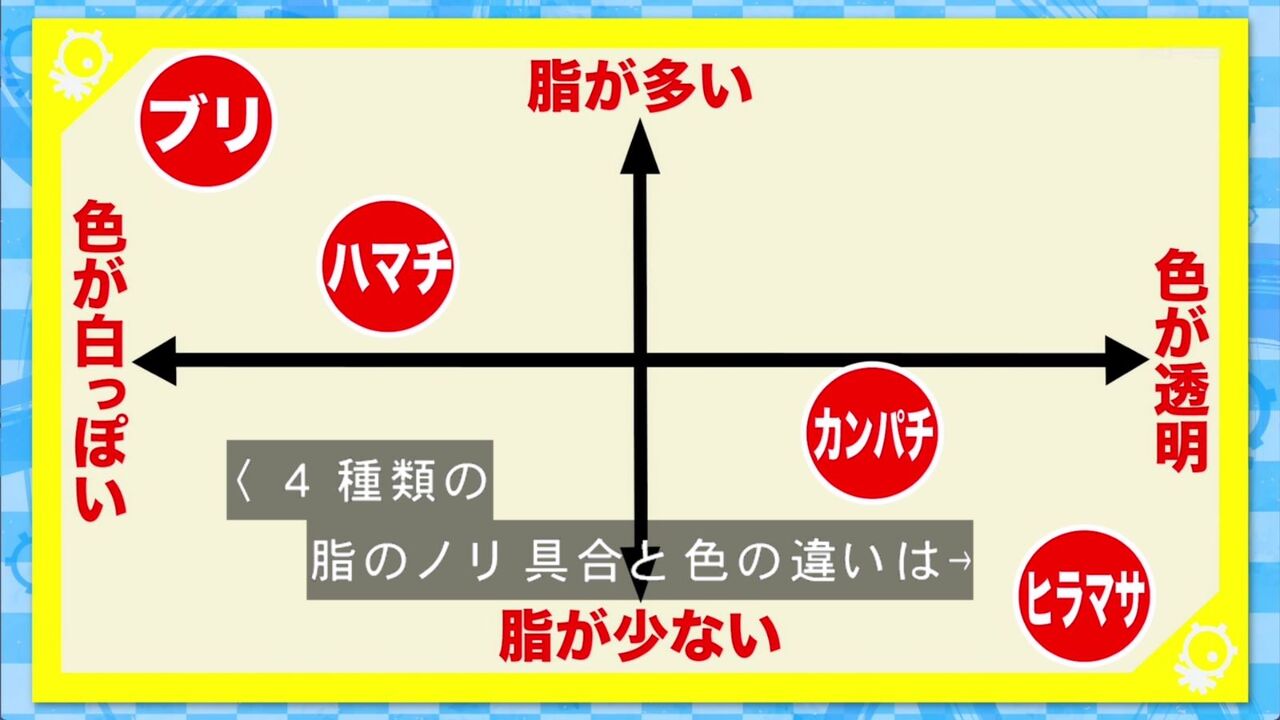 ブリとハマチはほぼ同じだが、脂のノリが違う。