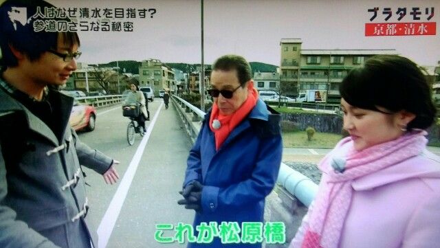 タモリさんたちは鴨川にかかる松原橋にやってきました。
