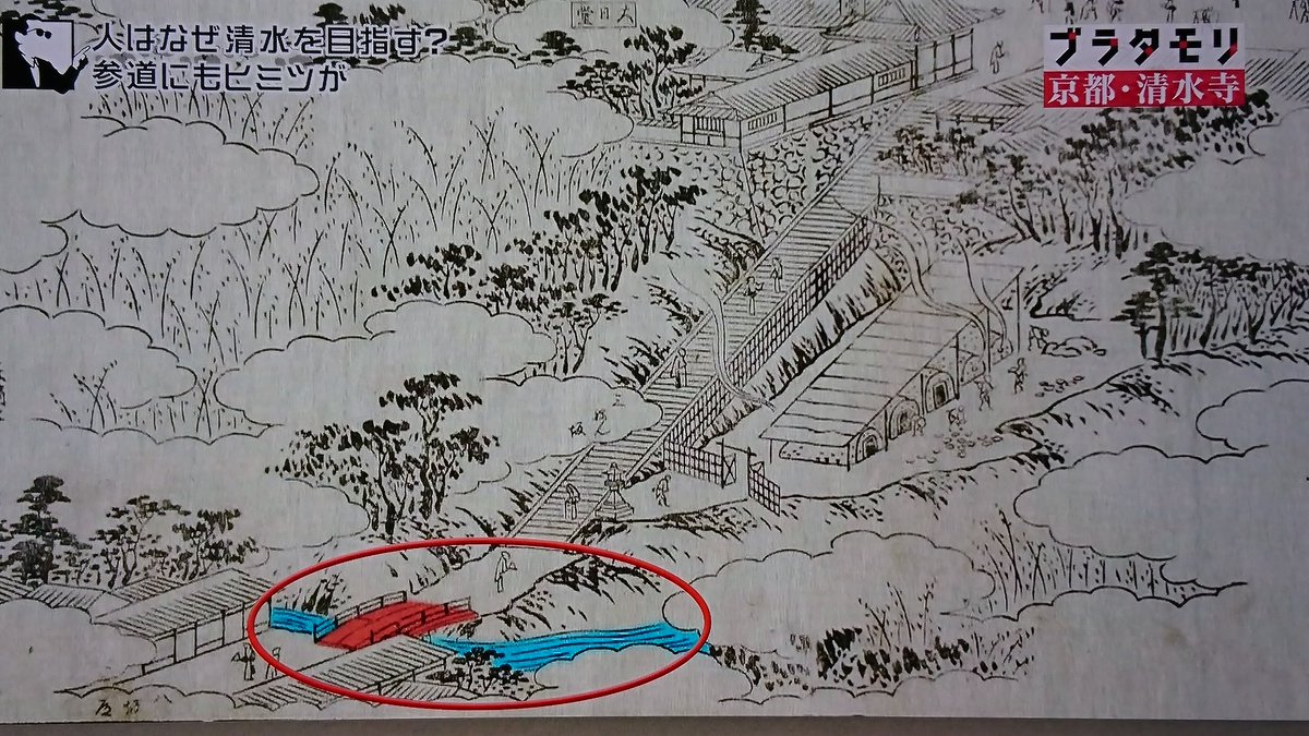江戸時代の絵図の三年坂には轟川と橋が描かれていました。