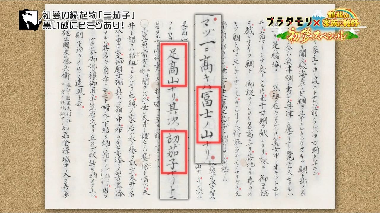 黒い砂と茄子の関係を知るため、タモリさんたちは三保半島の折戸地区にやってきました。