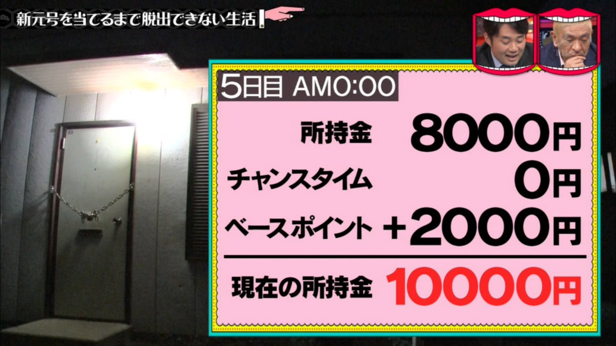 「電波少年的懸賞生活」のなすびは一人で約1年。