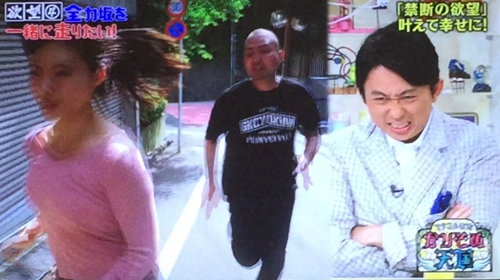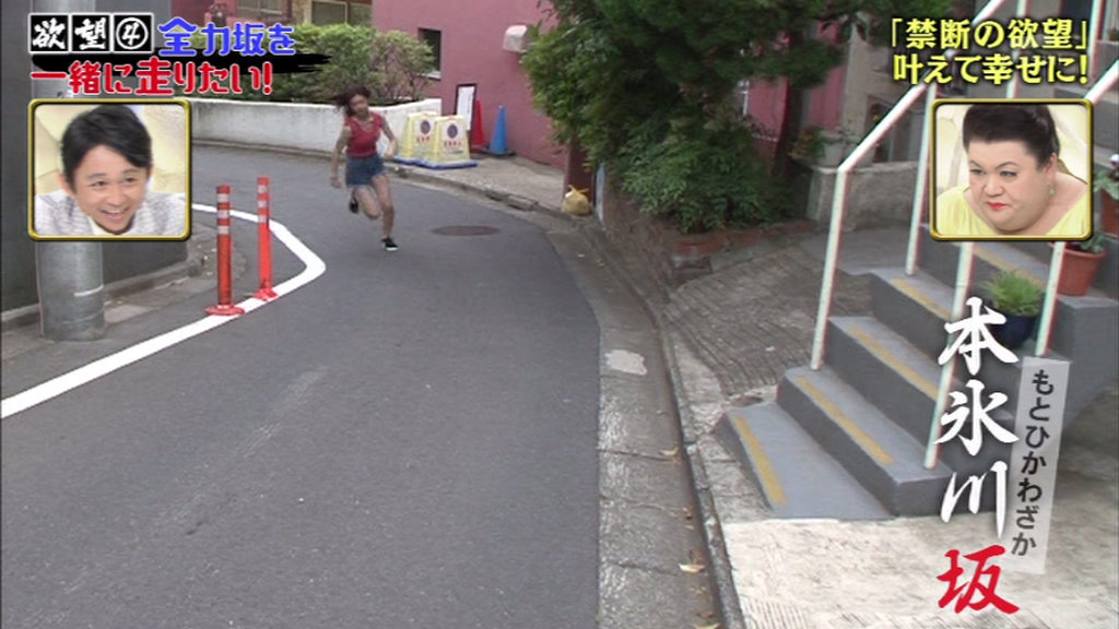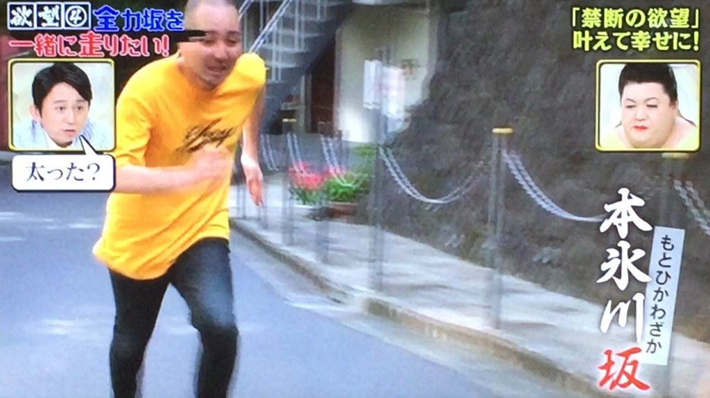 2018年06月15日 かりそめ天国 6月13日放送~全力坂(大澤玲美、星名美津紀×内間政成) 一本目。大澤玲美ちゃん。港区赤坂・本氷川坂。コーナー。階段から内間w最初から肩が揺れている。久々だから?ゴール。普通に運動不足のオジサンと元気な若い子w二本目。星名美津紀ちゃん。いつものアングル。世田谷区岡本・堂ヶ谷戸坂。茂みからw変質度100%%の登場w有吉「抜いちゃう、抜いちゃう!」また運動不足のオジサンと若い子w茂みから出てくるのは怖すぎるw体を絞るために長~い坂を走らせようw タグ :#かりそめ天国#6月13日#全力坂#内間#大澤玲美#星名美津紀#本氷川坂#堂ヶ谷戸坂