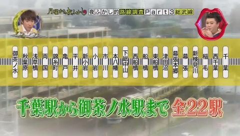 総武線は千葉駅から御茶ノ水駅まで全22駅。