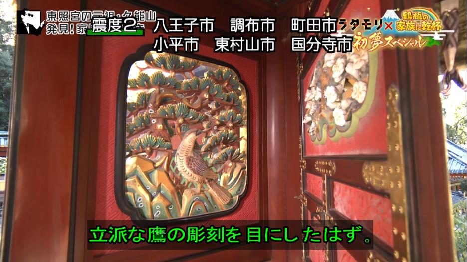 社殿正面にある唐門に、家康の鷹好きを示すものがある。