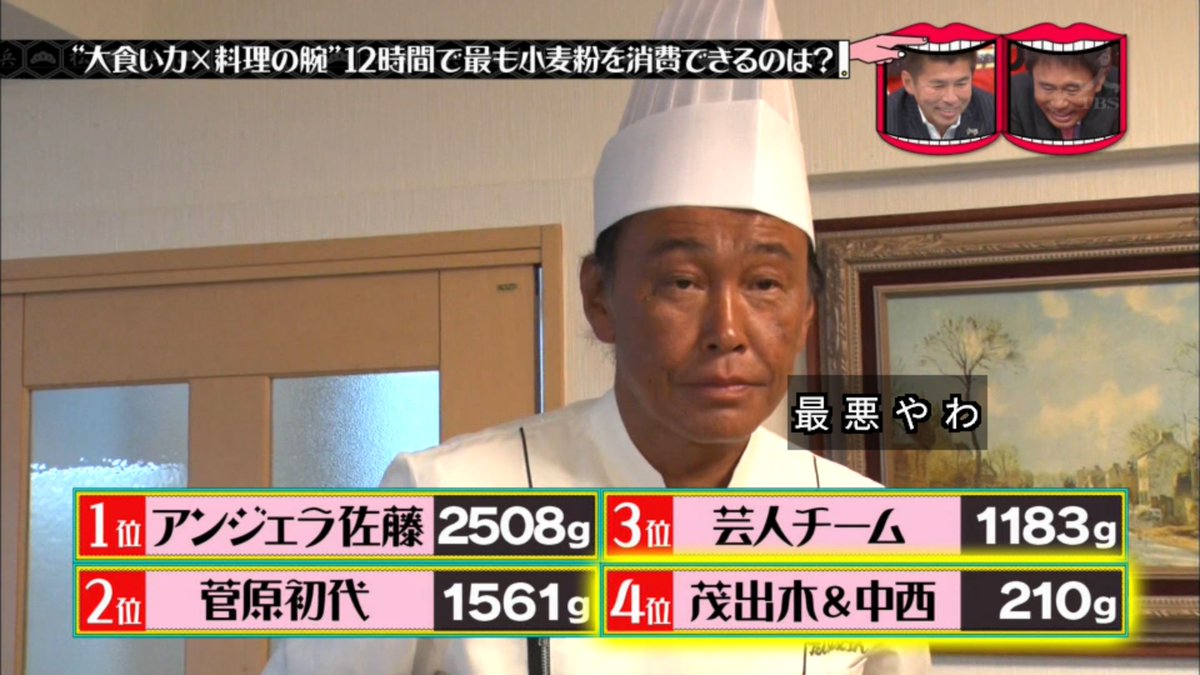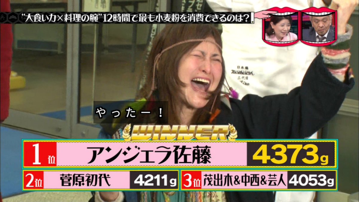 大食い王はジャイアント白田、アンジェラ佐藤、菅原初代。