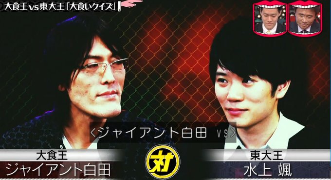 第3戦は、少食の大食い王ジャイアント白田 vs 最近彼女と別れたらしい水上颯。