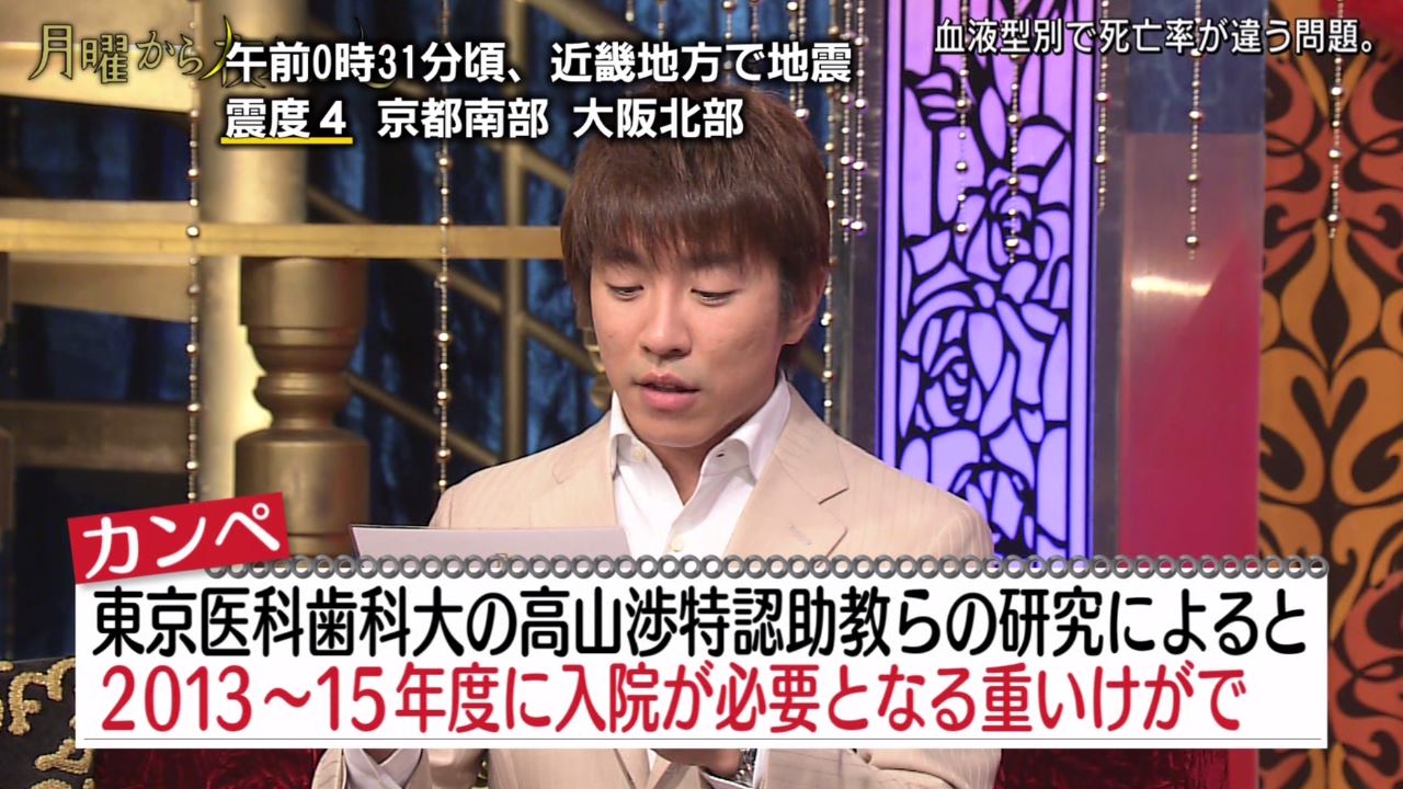 重症のケガで死亡する確率は、血液型別ではO型が高い。