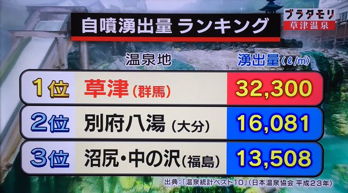 草津の自噴湧出量はダントツ全国1位。