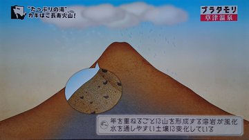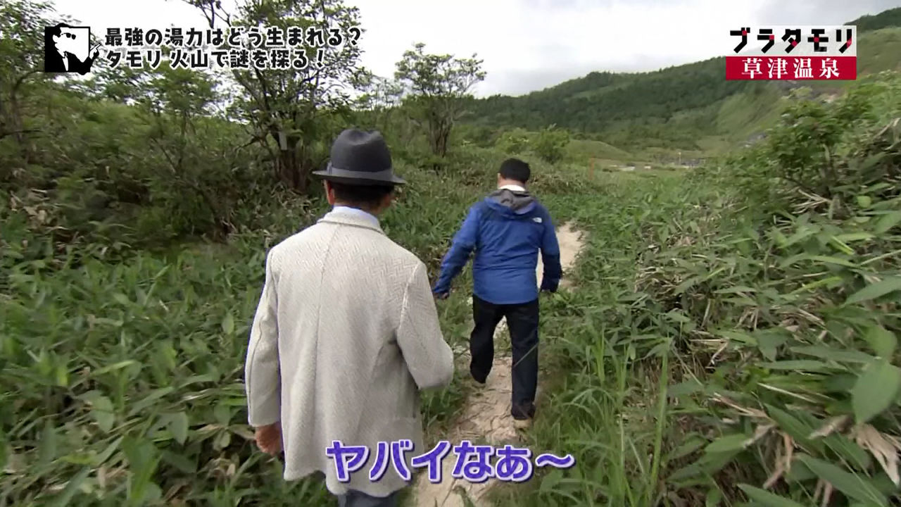 草津温泉の湯力の秘密を探りに、タモリさんたちは草津温泉から西に3キロほど山を登った草津白根山の中腹にやってきました。