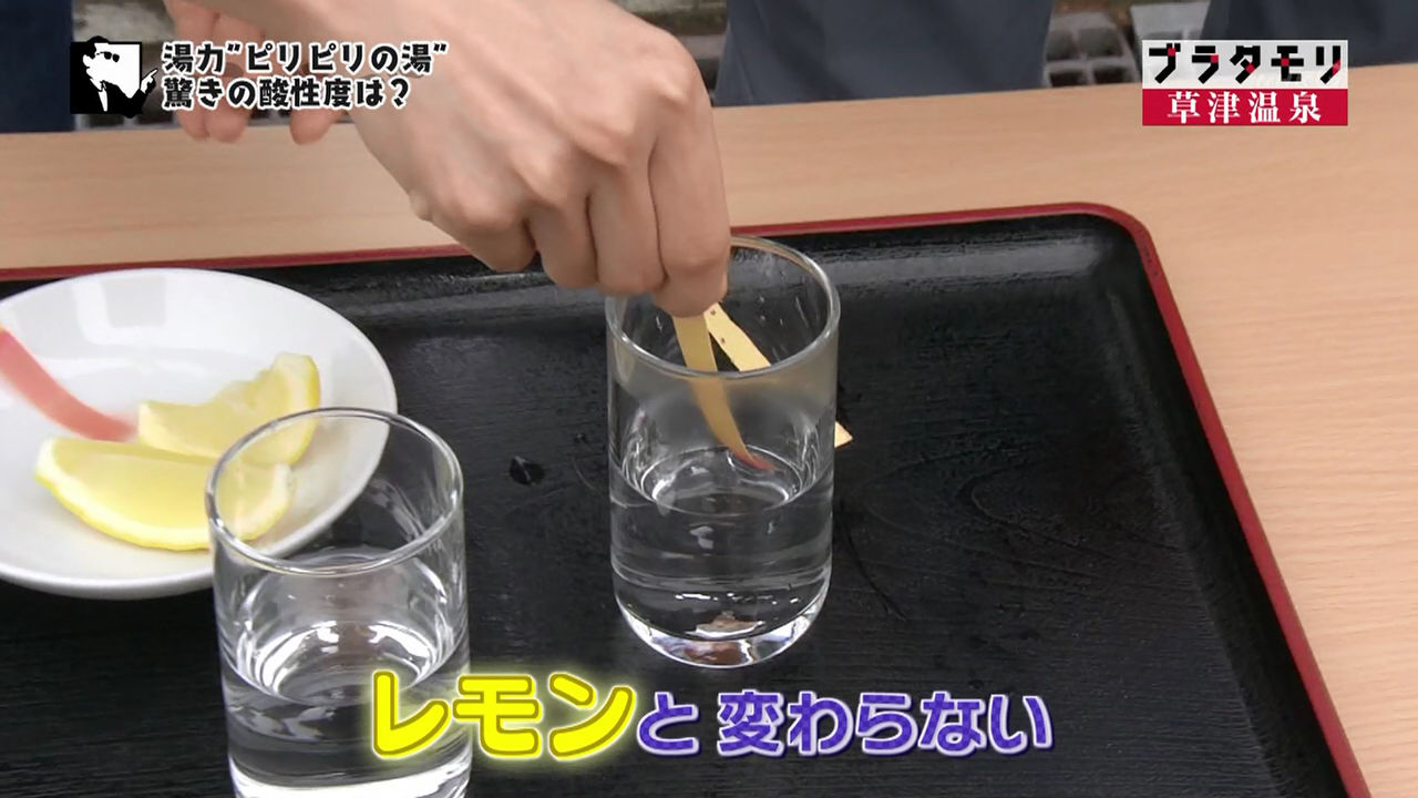 草津温泉の湯とレモンの酸性度を比べてみる。