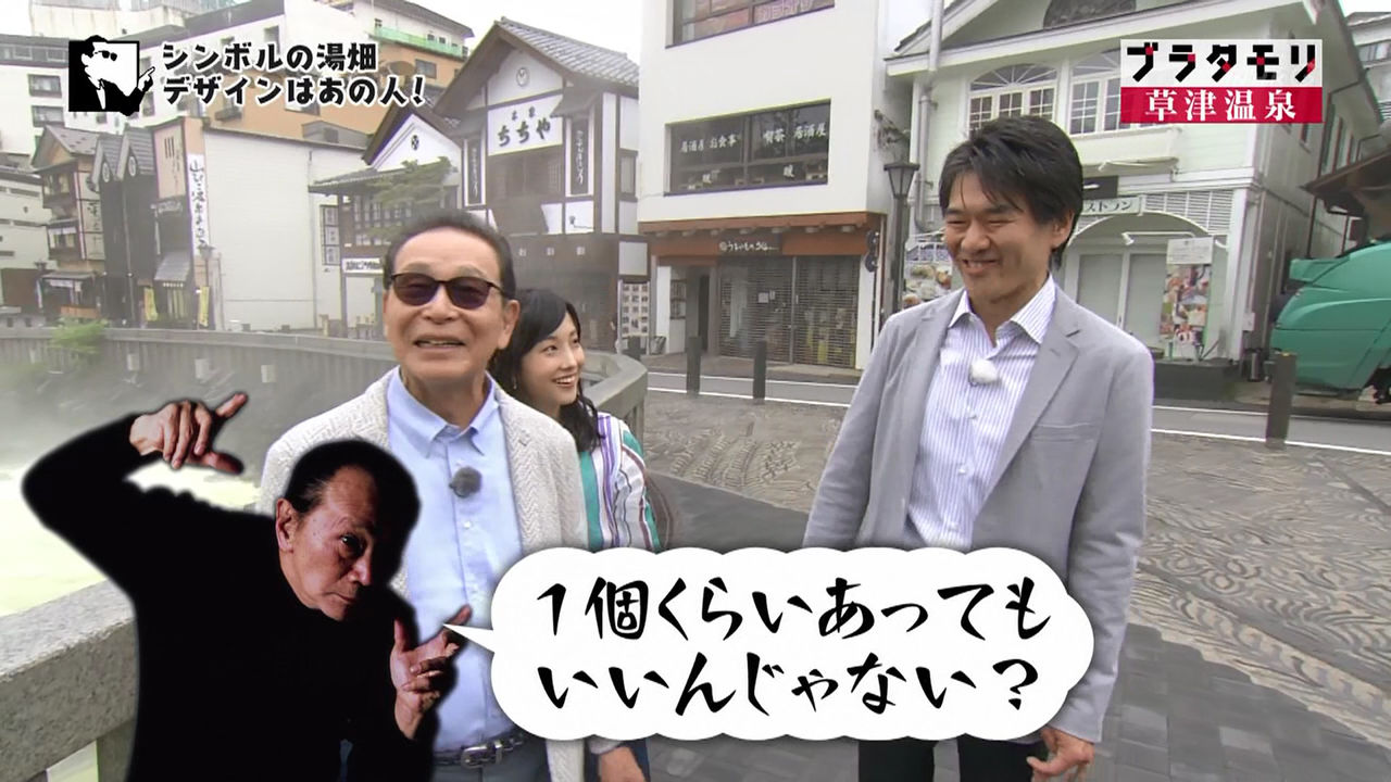 タモリさんたちは再び山の麓の温泉街に降りてきました。