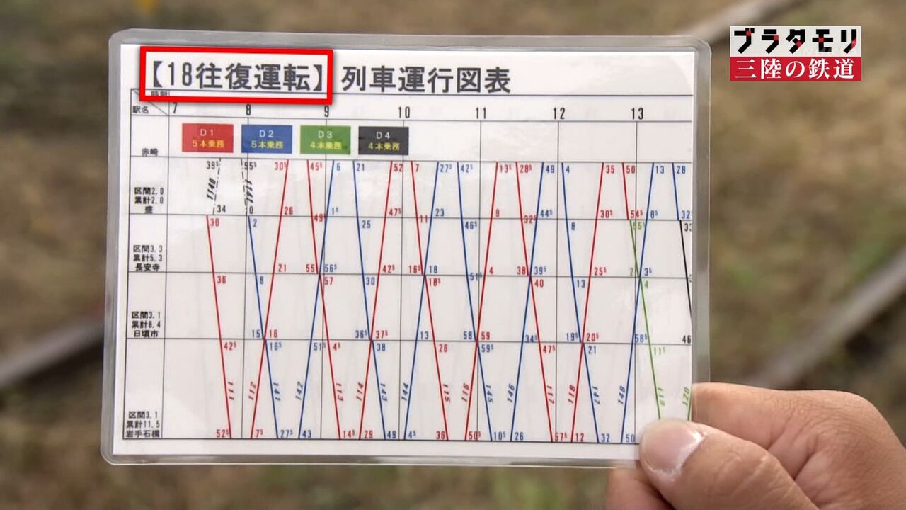 50m間隔で坑道があり、それらから落とされた石を貨物車が運ぶ。