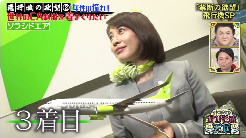 CAさんの制服を着まくるのは当番組の久保田直子アナ。