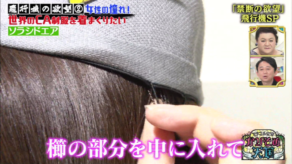 帽子についている櫛で帽子を固定する。