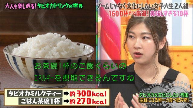 タピオカミルクティーはご飯茶碗1杯分よりカロリーが高い。