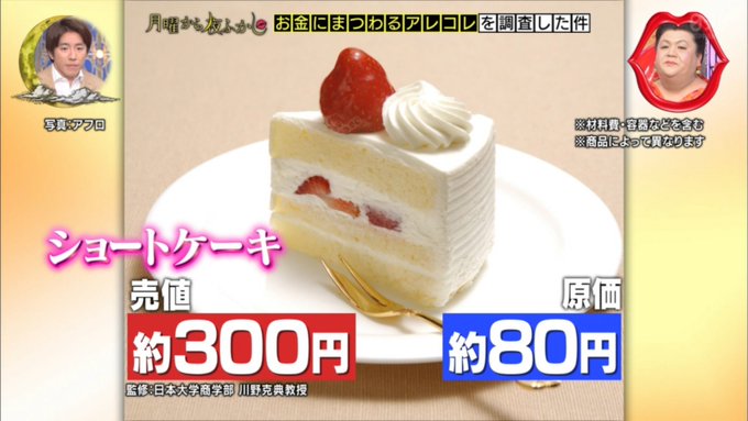 ショートケーキの原価80円。